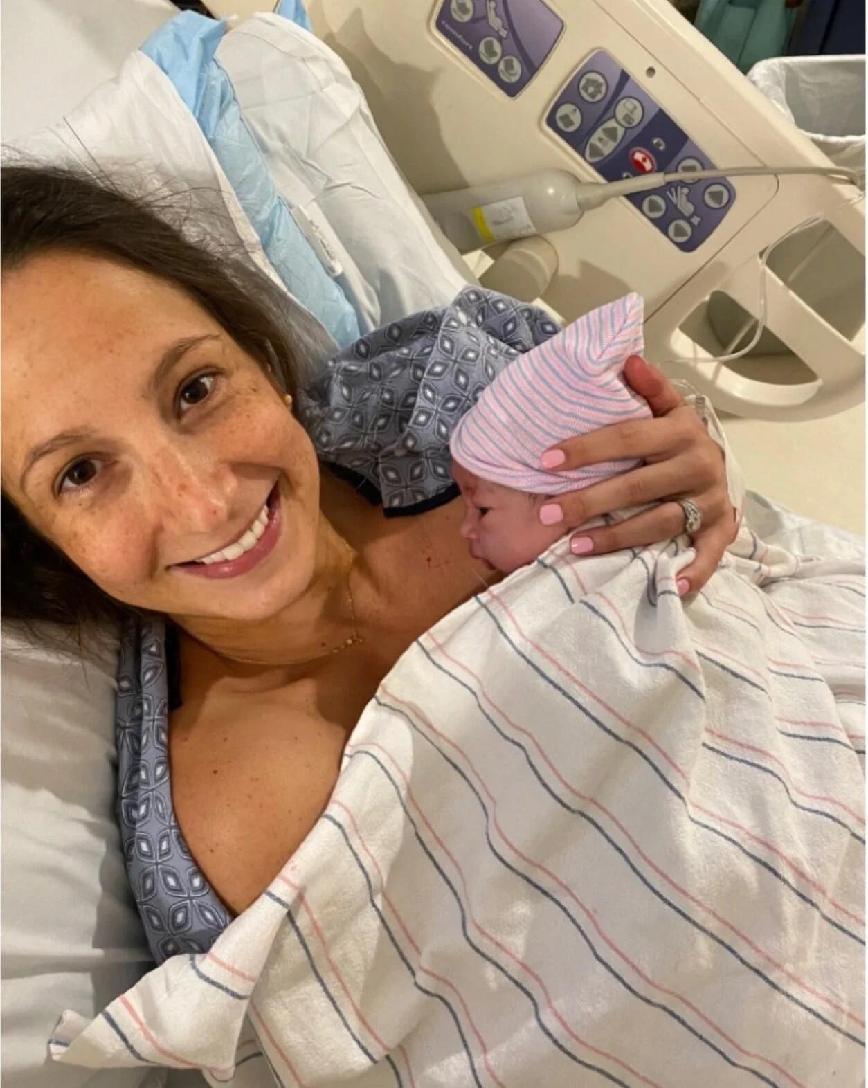 As we got in the car, I quickly realized these were definitely contractions and not just cramps. I remember feeling very calm. We got to the hospital around 6:30am, and I was 5cm dilated. I was asked more than once if I wanted an epidural, but I kept opting out. I just wanted to labor on my own with Zack until it was time to push. What worked for me was walking around-laying down and sitting did not work for me. I labored while walking and found one corner spot in the room that I kept leaning against. Zack was by my side the entire time. I didn’t scream, I didn’t cry. I kept thinking my body knows what to do and I trusted myself, and my baby, to do this right. Two hours later I felt a strong urge to push, and we called the doctor in. I was at 10cm. I got into the bed, pushed three times, and our beautiful baby girl, Sophia Rose, was here. While pushing, I remember zoning out and just focusing on my core strength and the thought of meeting my baby. It helped tremendously. Sophia came out calm and we immediately got into the skin to skin position. It was the proudest and most exhilarating moment of my life.